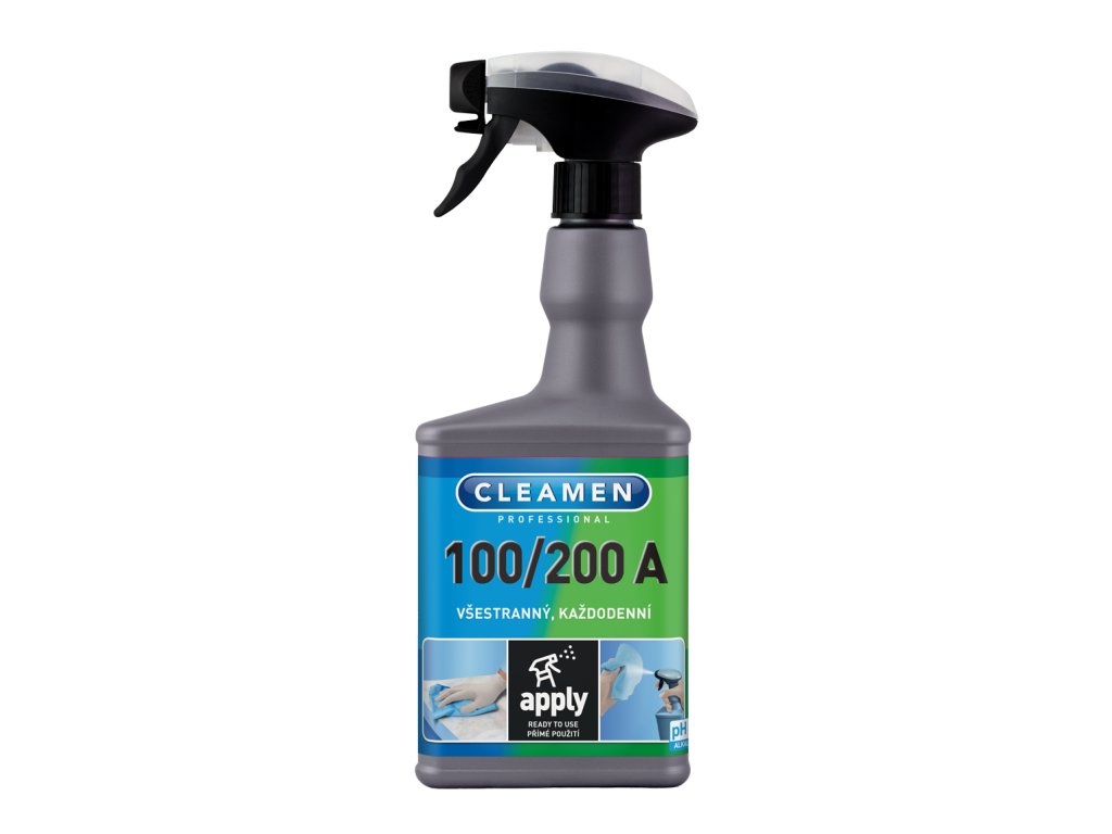 CLEAMEN 100/200A je pěnivý a velmi příjemně parfemovaný univerzální čisticí prostředek pro všestranné denní čištění všech ploch určený k přímému použití bez ředění. Mycí roztok aplikujte postřikem na čištěné plochy nebo do čisticí utěrky.