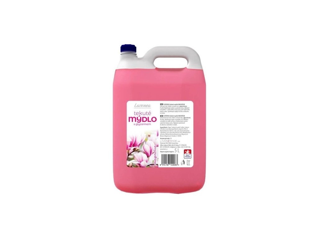 LAVONEA tekuté mýdlo magnólie 5 l - kvalitní mýdlo s neutrálním pH a glycerinem pro hebké, čisté a voňavé ruce. Tekuté mýdlo zajistí Vašim rukám a pokožce dokonalé mytí a dokonalou hygienu. Mytí rukou patří k základním hygienickým návykům. Tekuté mýdlo Lavon je vhodné pro každodenní použití. Mýdlo bohatě pění a spolehlivě odstraní z rukou a pokožky špínu a nečistoty. Lavon tekuté mýdlo nedráždí Vaši pokožku a zanechá ji jemnou a hebkou.