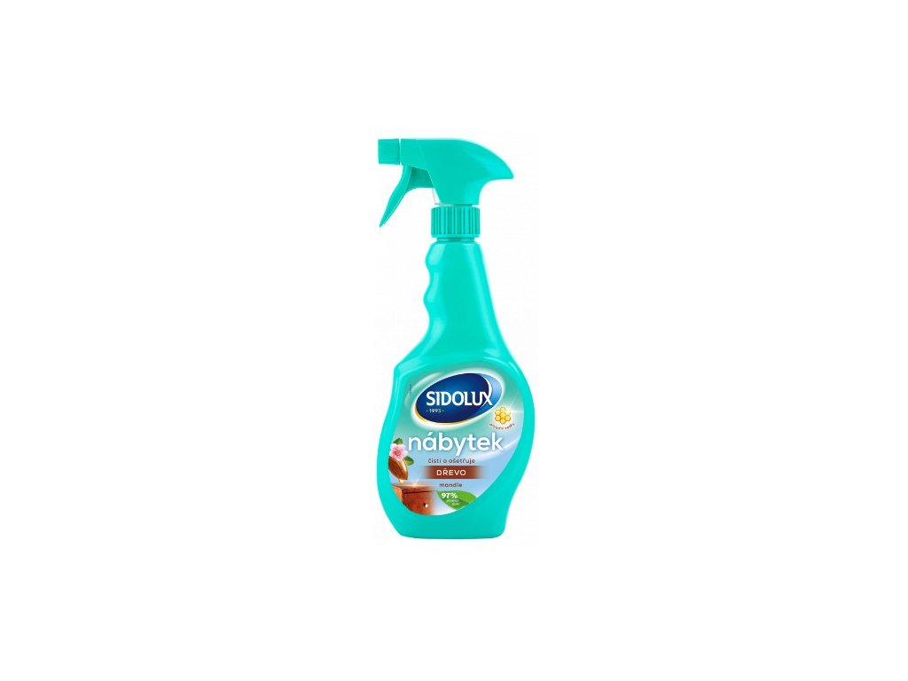 SIDOLUX rozprašovač na nábytek díky své unikátní receptuře s obsahem přírodních vosků snadno odstraňuje prach a ohmatky. Chrání povrch před opětovným usedáním prachu a zanechává příjemnou vůni po mandlích.