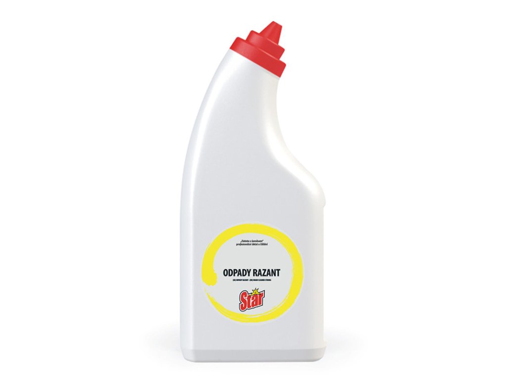Star čistič odpadů razant je razantní, vysoce účinný gelový čistič odpadů s maximálním účinkem na uvolnění ucpaných odpadů a na odstranění zápachu. Je určen k čištění odpadů zanesených organickými materiály, zejména tuky a mastnotou, vlasy, zbytky mýdel, případně i kuchyňskými zbytky. Je vhodný na nerezové, chromované, umělohmotné i keramické povrchy odpadů. Nepoužívejte na hliník. Účinné koncentrované složky prostředku zabezpečují hygienickou čistotu v prostoru odpadu.