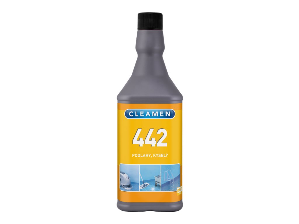 CLEAMEN 442 podlahy kyselé 1l je nejvýkonější mycí a čistící prostředek na podlahy a povrchy, které jsou odolné kyselinám. Má víceúčelové použití, je určen na postavební, periodický i denní úklid.