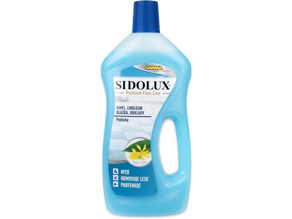 SIDOLUX premium floor care - ylang ylang, 750ml je speciální prostředek na mytí vinylových podlah, linolea, dlažby, keramických obkladů, včetně jiných povrchů z těchto materiálů vyrobených.