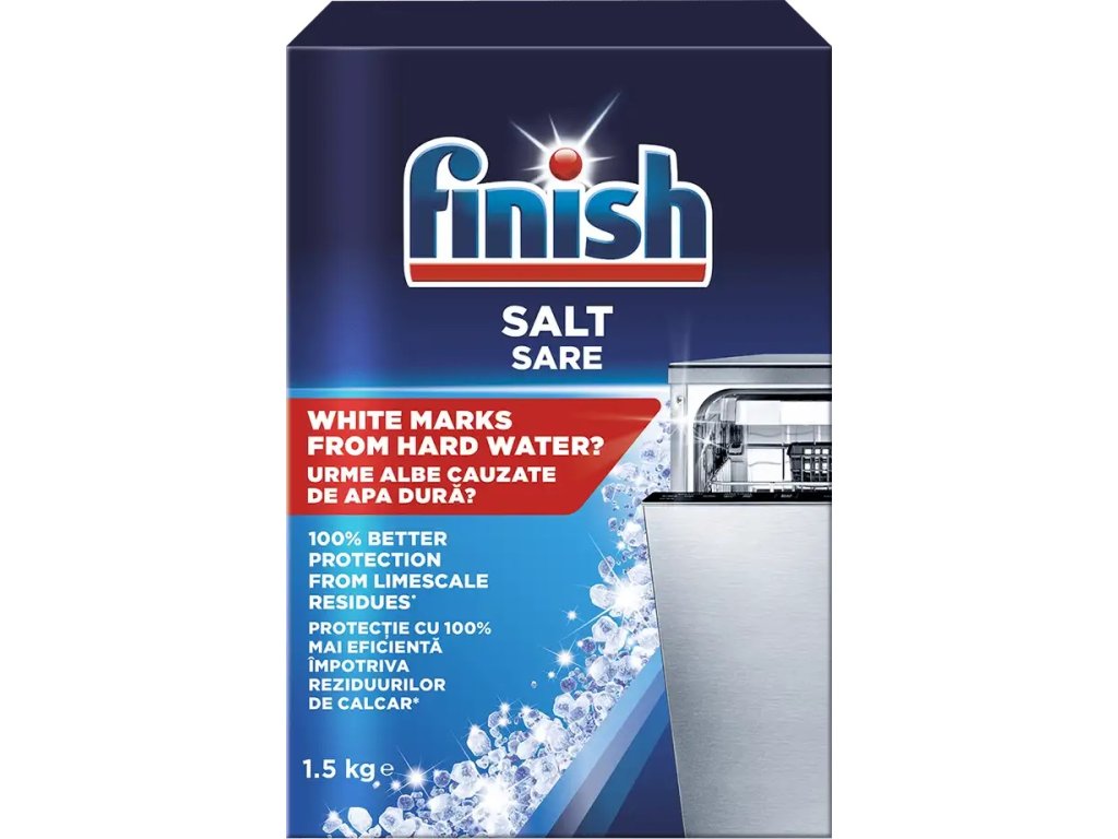 Finish sůl do myčky 1,5kg účinně změkčuje vodu a zvyšuje tak čisticí účinek mycího prostředku, pomáhá předcházet skvrnám a stopám vody na Vašem nádobí. Pro dosažení nejlepších výsledků pravidelně kontrolujte správné množství regenerační soli ve Vaší myčce.