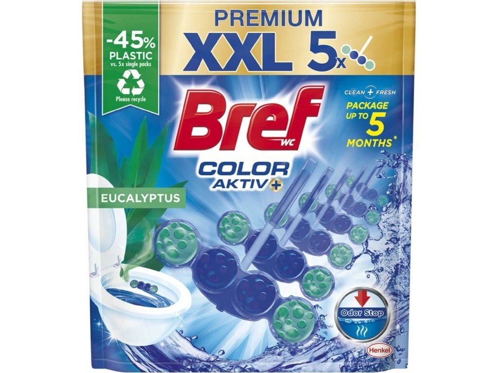 Bref WC blok Color Aktiv s vůní eukalyptu obsahuje 4 účinné kuličky, které pomocí aktivní modré pěny čistí toaletu, poskytují jí ochranu proti tvorbě vodního kamene, působí proti usazování nečistot a propůjčují toaletě mimořádnou svěžest. WC blok Color Aktiv s vůní eukalyptu od značky Bref zanechá toaletu po každém spláchnutí hygienicky čistou a svěží.