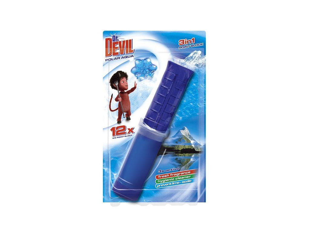 Dr. DEVIL WC blok 3in1 je extra účinný WC bodový blok voní, čistí a preventivně působí proti usazování vodního kamene. Doba působení jedné kytičky je cca jeden týden. Balení 75 ml vychází na 12 dávek (kytiček).